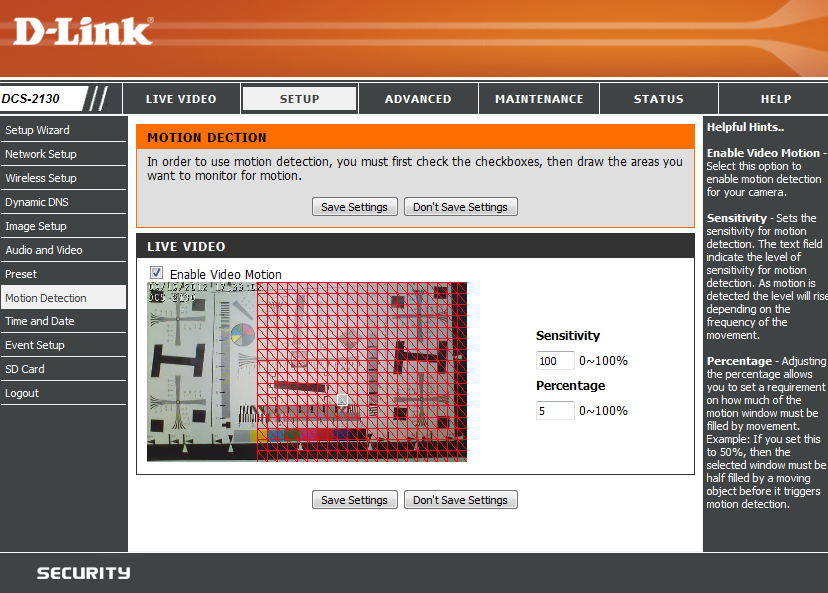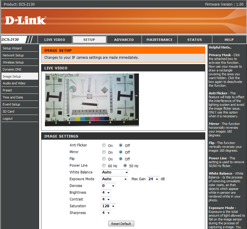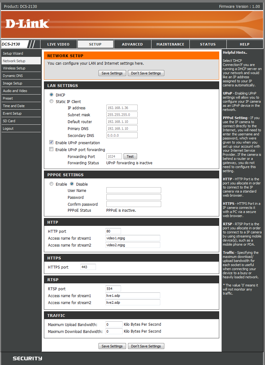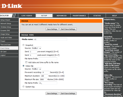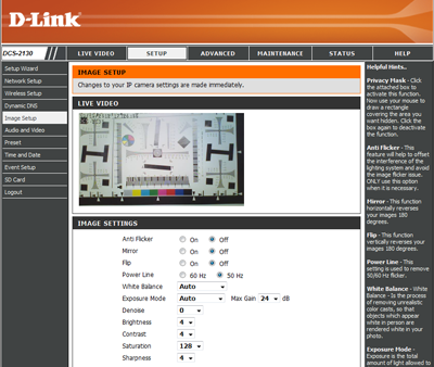 Переходим к камере DCS-2103. Меню этой модели на наш взгляд лучше структурировано и не отпугивает не очень опытного пользователя обилием непонятных терминов.
