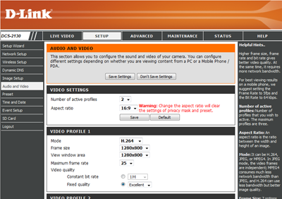Также как и GV- CB120 и другие современные камеры, изделие от D- LINK поддерживает два независимых потока видео с разными настройками. Это м.б крайне полезно при удаленном подключении к камере для просмотра живого видео: локально хранится видео в максимальном качестве а для удаленного просмотра отдается поток с невысоким разрешением и частотой кадров с целью экономии полосы пропускания.