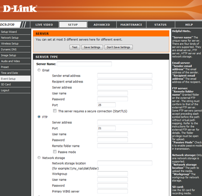Камера D- Link более богата интерфейсами. Помимо порта Ethernet и разъема питания (обе камеры не поддерживают питание по сети ( PoE)), модель DCS-2103 оснащена парой цифровых входов-выходов, позволяющих подключить внешний датчик (открытия двери, задымления и т.д.) и исполнительное устройство (сирена, ввод охранно-пожарной сигнализации и т.д.), а также аудио-выходом ( mini- jack 3.5 mm) для подключения внешней системы оповещения. Также на обеих камерах мы обнаружили слот для карты памяти MicroSD, предназначенной для локального хранения видеоданных