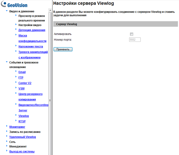Нам показалось не совсем логичным, но в этом же меню находятся настройки подключения к Recording Server – это ПО, реализующее видеосервер, предназначенный для организации для больших масштабируемых систем видеонаблюдения. Также в данном меню можно настроить подключение к центру резервного копирования, включить функцию удаленного просмотра видео с локального хранения камеры (Viewlog), настроить подключение к GV-Control Center - интегрированной системе контроля безопасности, необходимой для выполнения задач централизованного мониторинга.