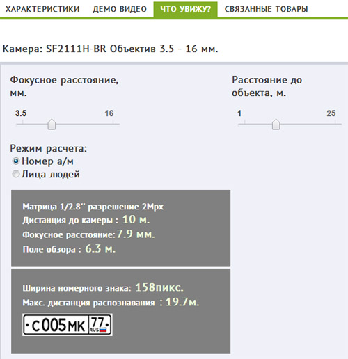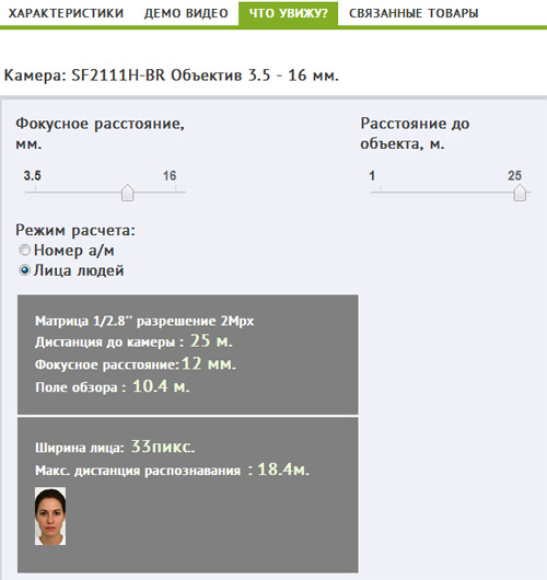 Знаете ли вы, что на нашем сайте вы можете легко и просто визуально оценить размер лица человека или номера автомобиля, который вы сможете получить от той или иной модели камеры с того или иного расстояния?